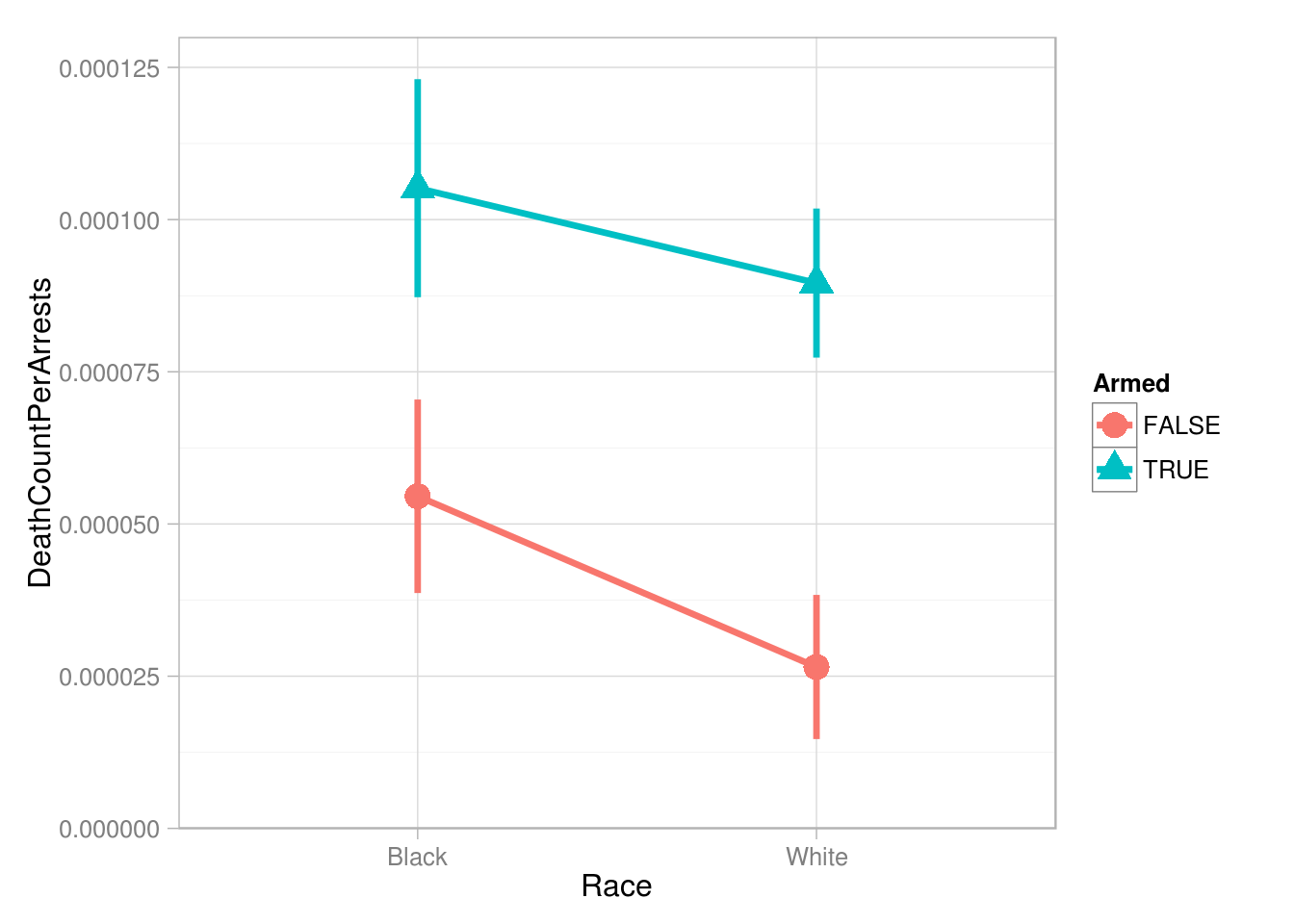 ReplyDeleteI'd actually be very cautious about making claims like this, given that my analysis uses a "per-arrest" metric that doesn't capture differences in armed/unarmed arrests. I should maybe try to remedy that…